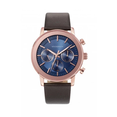 Reloj Viceroy 47897-37 elegante para hombre con caja en acero rosa cobre y correa en piel reloj multifunción, color de esfera azul, garantía Viceroy