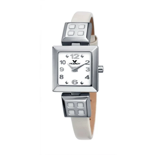Reloj Viceroy con caja de acero con esfera en blanco en cuadrado y números arábigos y correa de piel en blanco con adornos cuadrados con esmalte pulsera