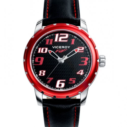 Pack reloj Viceroy cadete 40397-55 reloj de pulsera para cadete comunión colección Next. Reloj Viceroy unisex tamaño cadete con caja de acero, diámetro de la caja 34 milímetros y correa piel sintética en negro con pespuntes en rojo y con cierre de hebilla de seguridad Viceroy. Esfera en negro, números arábigos grandesa. Resistente al agua. En estuche reloj Viceroy y pulsera caucho. Garantía Viceroy