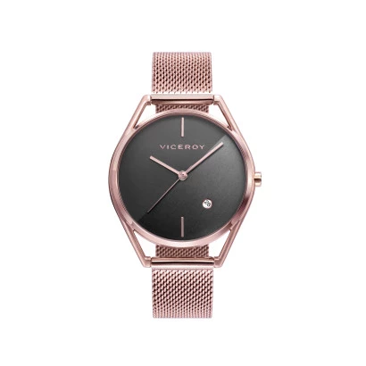 Reloj Viceroy 42392-17 para mujer en acero, caja y correa milanesa ip oro rosa, esfera en gris, garantía Viceroy