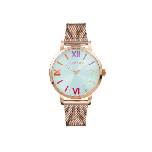 Reloj Viceroy 471258-33 para mujer redondo en acero rosa, esfera azul con números romanos de colores, garantía Viceroy