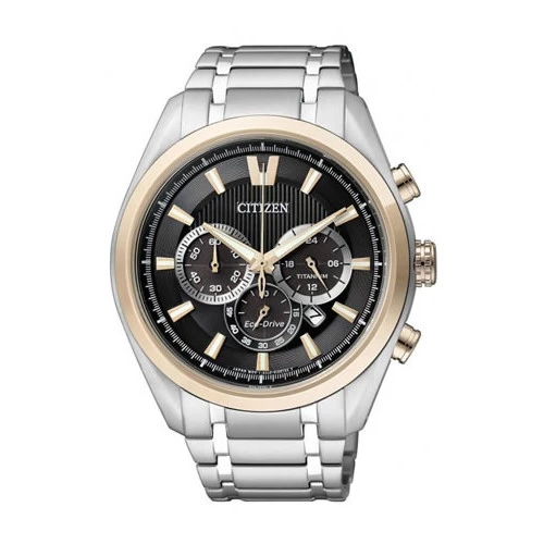 Reloj Citizen CA4014-57E crono titanio para hombre, ecodrive, esfera en negro y bisel en rose. Estuche y garantía Citizen.