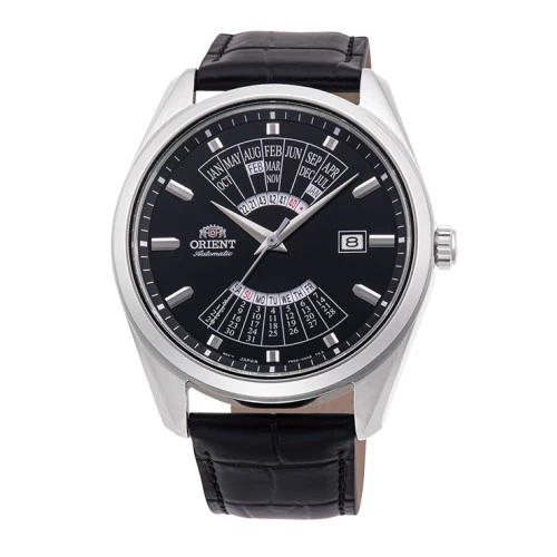 Reloj Orient automático ra-ba0006b10b para hombre multiyear en acero y piel, esfera negra, calibre: f6d22, estuche y garantía Orient.
