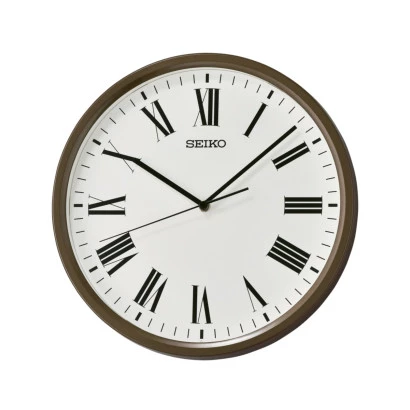 Reloj Seiko pared qha009b. Caja de plástico de calidad en marrón con esfera en blanco con números romanos. Medidas de 30,5 cm diámetro, 4,5 cm de grueso. Garantía oficial Seiko