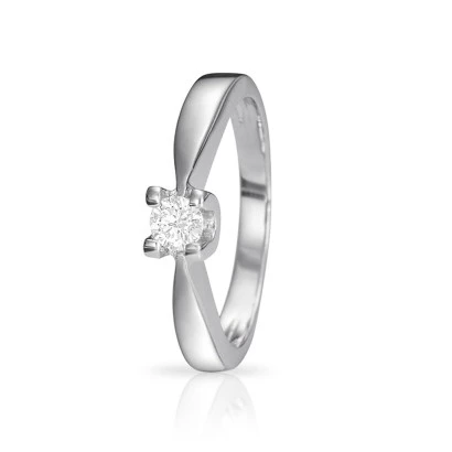Anillo solitario joya en oro blanco 750 milésimas con diamante talla brillante 0,15 ct, brazo del anillo fuerte en disminución, ideal regalo de pedida compromiso