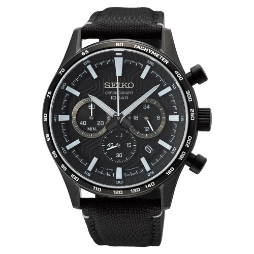 Reloj Seiko ssb417p1 para hombre cronógrafo en acero negro y canvas con esfera en negro, agujas en blanco, cristal zafiro. Neo Sports 8t63, movimiento japonés, garantía Seiko