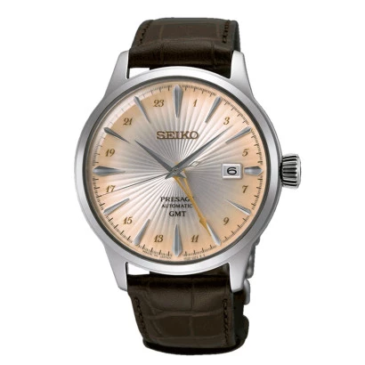SSK041J1 Seiko Presage Cocktail esfera champagne GMT hombre en acero y piel. Calibre 4r34, garantía Seiko