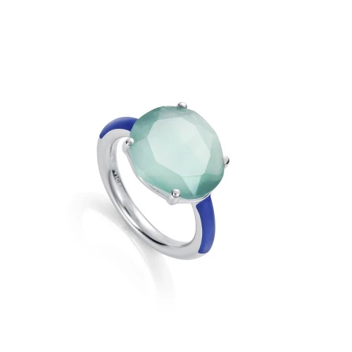 Viceroy anillo 3025a012-43 colección plata con rodio para mujer con piedra ojo de gato en verde engarzada y en el brazo del anillo esmalte en azul, garantía y bolsa Viceroy