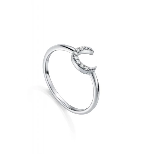 Viceroy anillo 61015a012-38 en plata colección Trend plata de ley 925 milésimas con baño de rodio para mujer con forma de luna con circonitas engarzadas, fino y elegante.