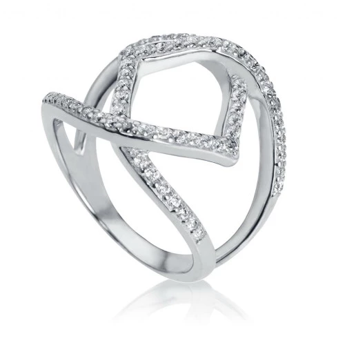 Anillo con forma elegante en plata y piedras circonitas en blanco