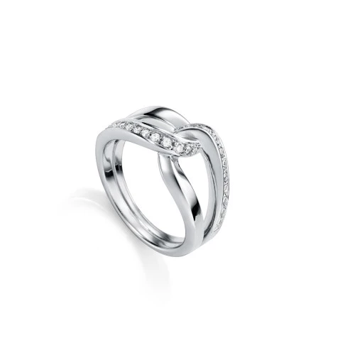 Anillo doble enlazado en forma de lazo con circonitas engarzadas fino y elegante .