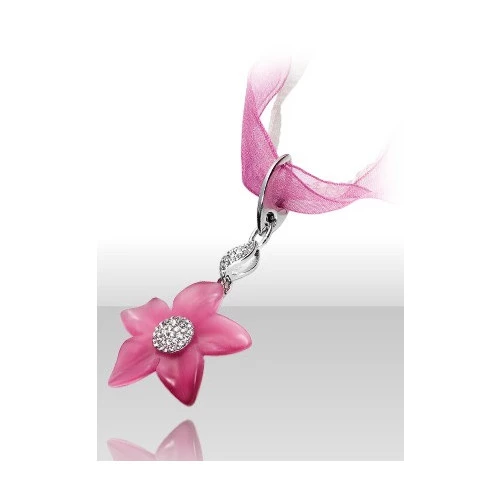 Colgante de Viceroy en plata con piedras para mujer con forma de flor pétalos en rosa y cristales de swarovski, colgante con dos cintas en seda rosa y blanco y flor con para colgar con cierre de mosquetón 1061c000-96
