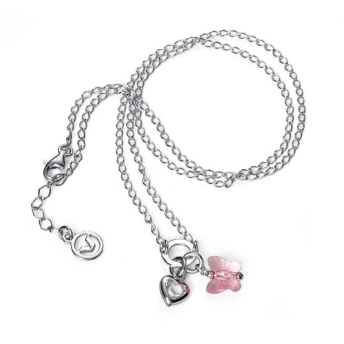 Viceroy cadena de plata de ley 925 milésimas con rodio 1128c000-57 para mujer con colgantes corazón en plata con piedra y mariposa en piedras rosa. Colección jewels en plata, garantía y estuche Viceroy
