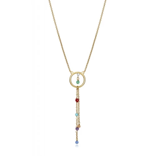 Viceroy collar 13007c100-59 con colgante aro y cadenas que cuelgan con piedras naturales de colores para mujer en plata con baño de oro, garantía y estuche Viceroy