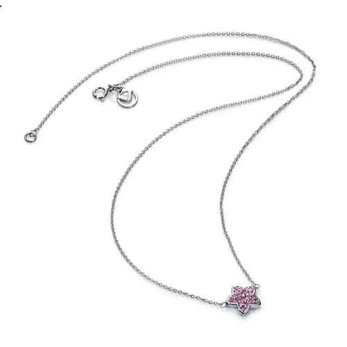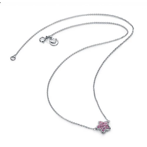 colgante con forma de estrella, elegante en plata y piedras circonitas en rosa