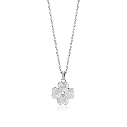 Cadena con colgante con forma de flor con cuatro corazones con circonitas.