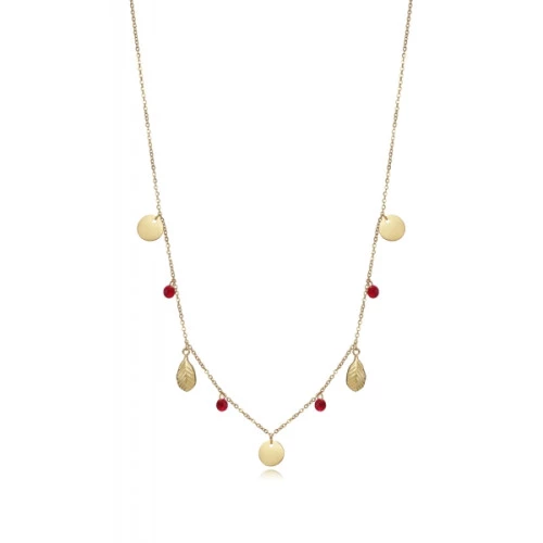 Viceroy colgante 75280c01012 colección Chic para mujer en acero dorado con colgantes hojas, tres chapas y circonitas rojas.