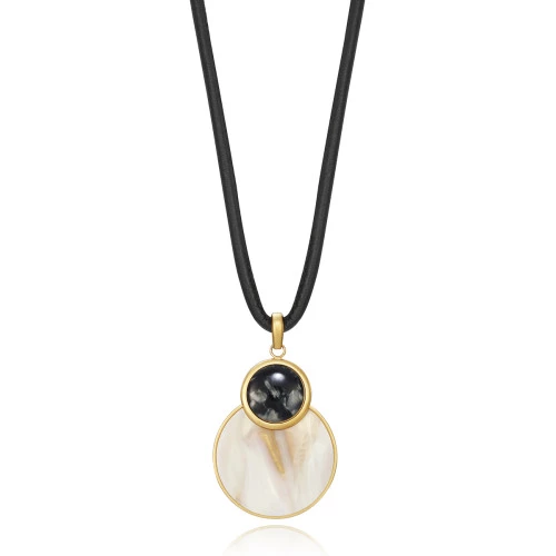 Collar para mujer en acero dorado en redondo con acetato en tonos grises y marrones, caucho con mosquetón cierre de seguridad Viceroy.
