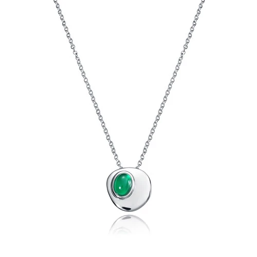 Viceroy collar colección Elegant 3026c000-42 en plata con rodio, con colgante redondo con forma con piedra natural ágata verde.