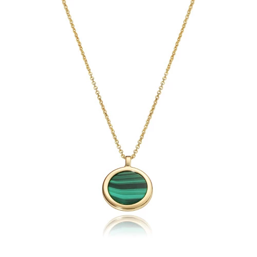 Viceroy collar colección Elegant 3028c100-42 en plata baño de oro amarillo, con colgante redondo con piedra verde malaquita