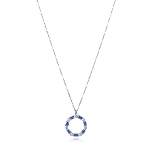 Viceroy colgante 9121C000-33 colección Trend para mujer forma redonda con piedras azules talla baguette y brillante con cadena en plata con baño de rodio.