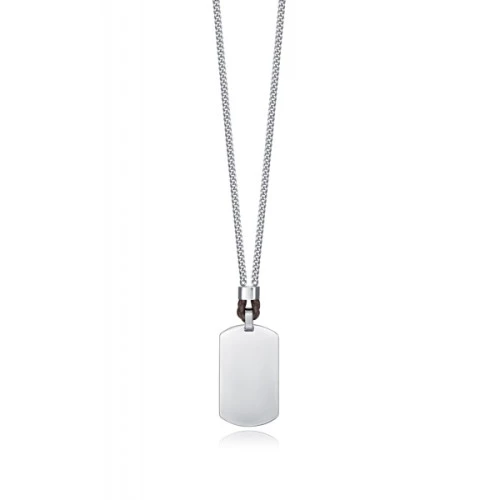 Cadena de acero de 50 centímetros, con colgante rectangular en acero con acabado cepillado rayado tipo militar .