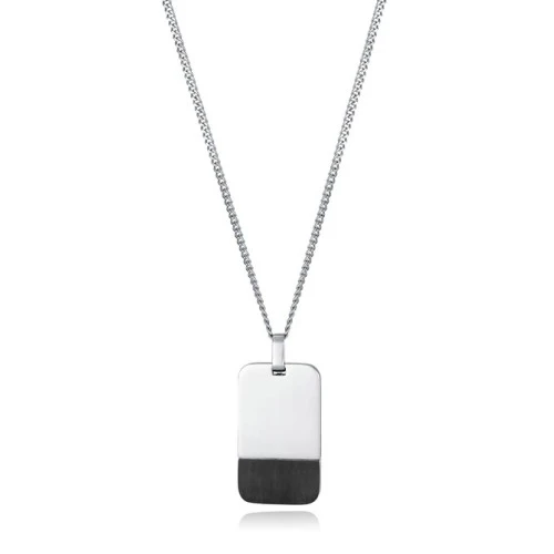 Cadena de acero de 55 + 5 centímetros, con colgante rectangular en acero pulido y negro, ip negro.