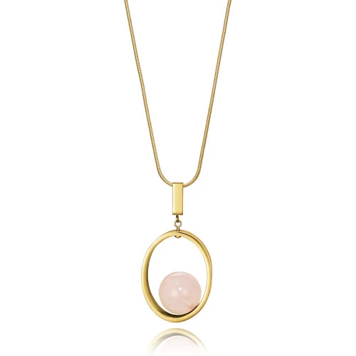 Collar para mujer en acero dorado con colgante redondo en acero ip dorado con cuarzo rosa natural. Cadena trae mosquetón cierre de seguridad Viceroy.