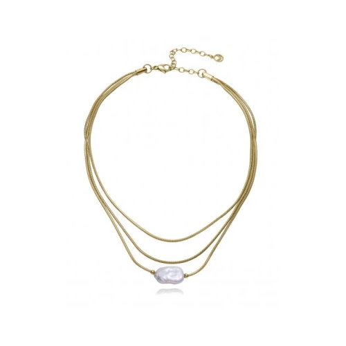 Viceroy collar con tres tiras en acero dorado con perla natural colección fashion 75440C01012. Collar con cierre mosquetón de seguridad Viceroy. Medida de 42 + 3 centímetros. Estuche y garantía Viceroy