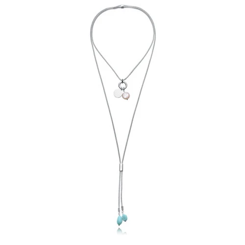 Viceroy collar 14344C01000 colección mujer fashion largo en acero chapado en plata con piedras natural AMAZONITA y perla redonda aplastada .