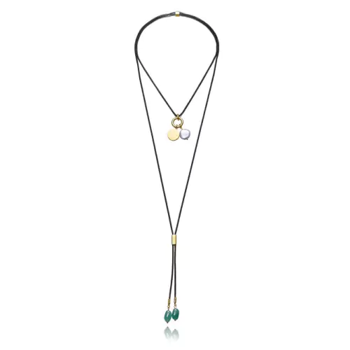 Viceroy collar 14344C01010 colección mujer fashion largo en acero ip negro y dorado con piedras natural AGATA VERDE y perla redonda aplastada .