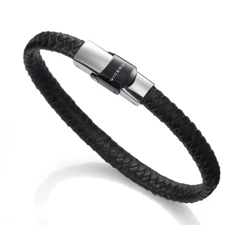 Viceroy fashion pulsera de cuero negro y acero 6097p09010 para hombre