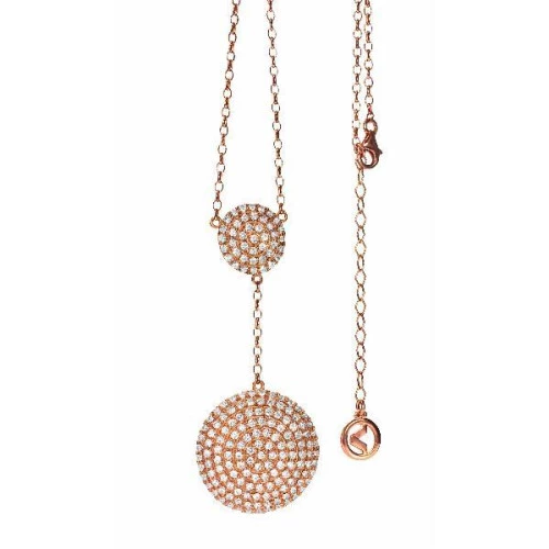 Colgante gargantilla Viceroy para mujer en plata en rosa y cristales swarovski con cadena rosa, con cierre de plata con baño de oro rosa con posibilidad de diferentes medidas 1067c100-30, dos motivos en redondo cuajado de piedras