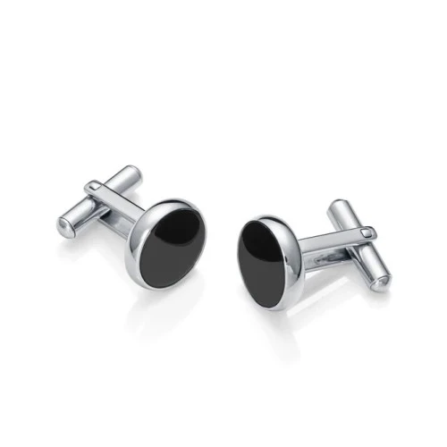 Gemelos en acero con forma redonda con piedra ágata, cierre fijo de muelle de seguridad.
