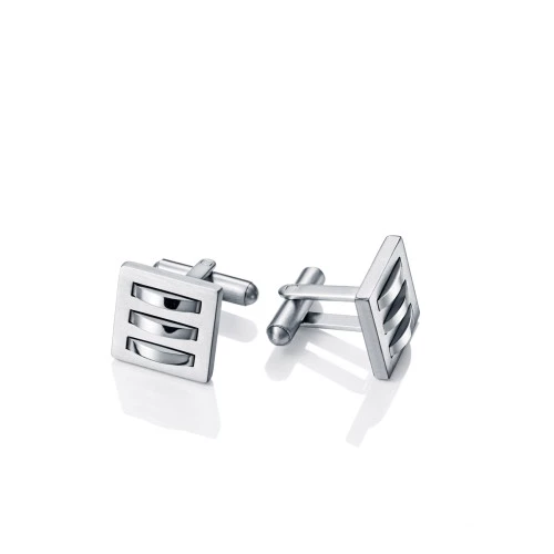 gemelos en acero con forma cuadrada con adornos centrales, cierre fijo de muelle de seguridad