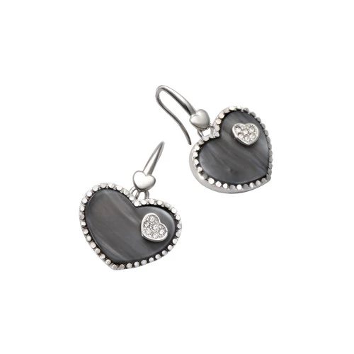Pendientes de plata bañados en rodio y nacar en gris con forma de corazón Viceroy 1085e100 25 plata de ley 925 milésimas, pendientes para colgar, pendientes enamorados