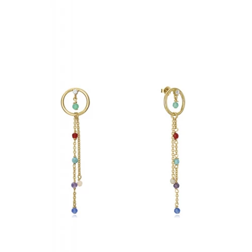 Viceroy 13007e100-59 pendientes aro y cadenas que cuelgan con piedras naturales de colores para mujer en plata con baño de oro, garantía y estuche Viceroy