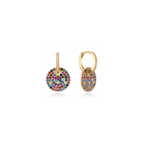 Viceroy pendientes 13071e100-39 colección Trend en plata de ley 925 milésimas bañado en oro para mujer con colgante redondo cuajado de circonitas de colores engastadas circonita. El pendiente trae cierre bisagra de insertar en tubo, el sistema permite quitar el colgante quedando así pendientes sencillos de aro Viceroy. Estuche y garantía Viceroy