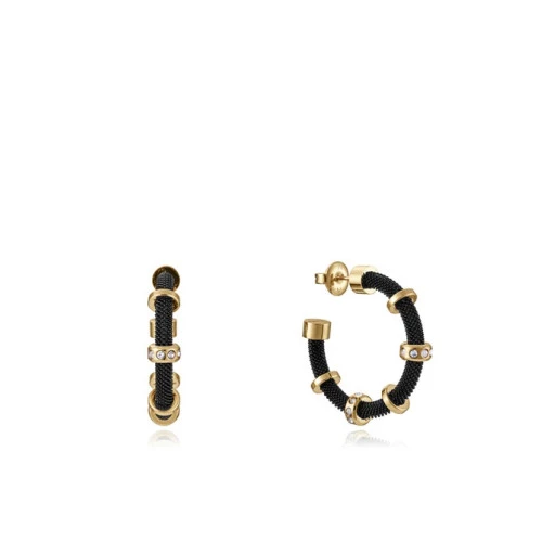 Viceroy pendientes 14110E01010 aros criolla en acero ip negro tipo malla con acero dorado y circonitas engarzadas, garantía y estuche Viceroy