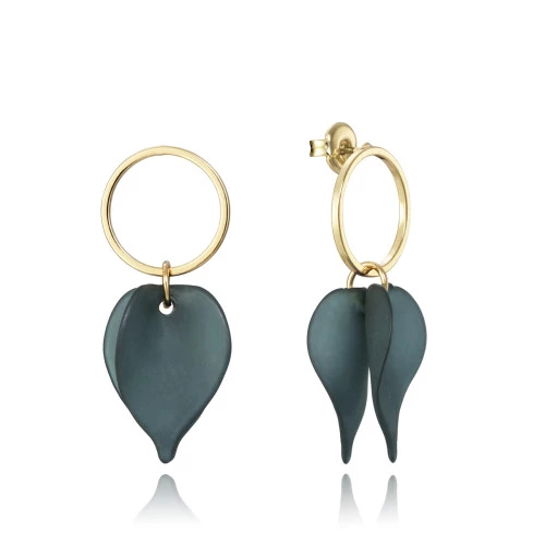 pendientes diseño de colgar aro redondo con hojas en verde de resina poliuretano,trae cierre tuerca tipo presión de seguridad Viceroy, garantía y bolsa Viceroy