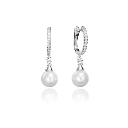 Viceroy pendientes con forma de aro para mujer en plata con piedras y perla que cuelga 71050e000-38. Garantía y estuche Viceroy
