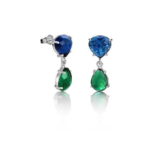 Pendientes Viceroy largos 9005e000-59 para mujer en plata 925 milésimas con piedras grandes verdes y azul que cuelgan, garantía y estuche Viceroy