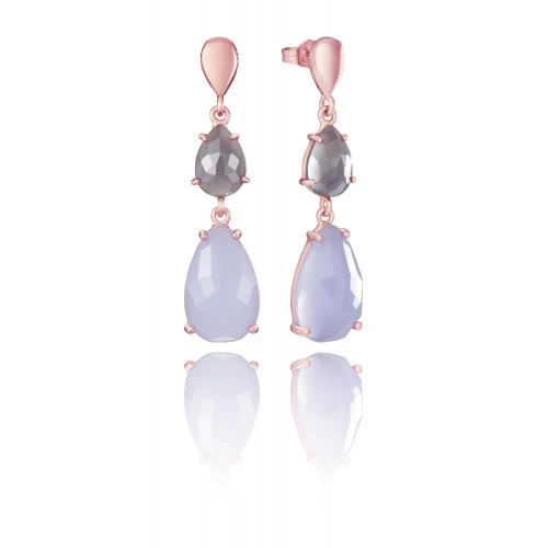Viceroy pendientes largos 9032e100-49 colección Elegant para mujer. Pendientes en plata de ley 925 baño oro rosa con piedras facetadas en morado y gris que cuelgan. Traen cierre de tuerca tipo presión de seguridad Viceroy. Estuche y garantía Viceroy