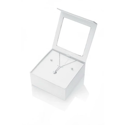 estuche con pendientes y colgante de plata de ley 925 milésimas rodinada