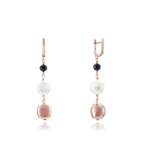 Viceroy pendientes de colgar 3016e100-66 colección plata de ley chapado oro rosa con cristal en negro, perla madre perla y pieza de plata chapada oro rosa, garantía y bolsa Viceroy
