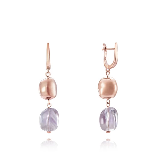 Viceroy pendientes de colgar 3017e100-47 colección plata de ley chapado oro rosa con pieza de plata chapada orro rosa y piedra en morado, garantía y bolsa Viceroy