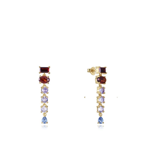 Pendientes Viceroy largos 9100e100-39 para mujer en plata baño de oro con piedras de colores que cuelgan. Garantía y estuche Viceroy