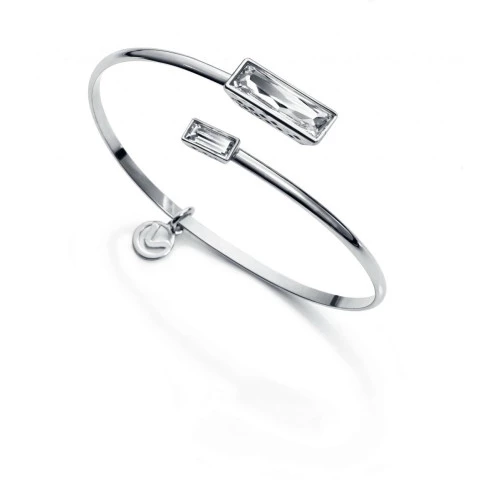Pulsera de plata Viceroy para mujer rígida fina y abierta con fácil puesta, con colgante y dos circonitas rectangulares en las puntas 1220p000-40, con colgante con el logo de la marca viceroy colección Penelope Cruz..Trae estuche Viceroy y garantía Viceroy