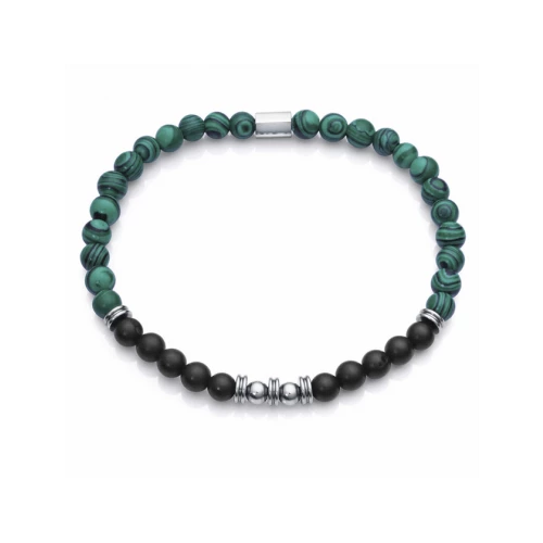 Viceroy pulsera 1486p09016 colección Beat para hombre unisex. Pulsera en acero con goma extensible, piedras malaquita y ágatas en negro. Estuche y garantía Viceroy