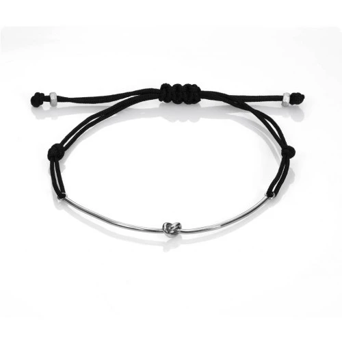 pulsera en plata rodinada con cordón negro corredizo